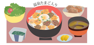 焼き鳥丼(温泉たまご入り)・小鉢2品・ サラダ・ みそ汁・漬物
